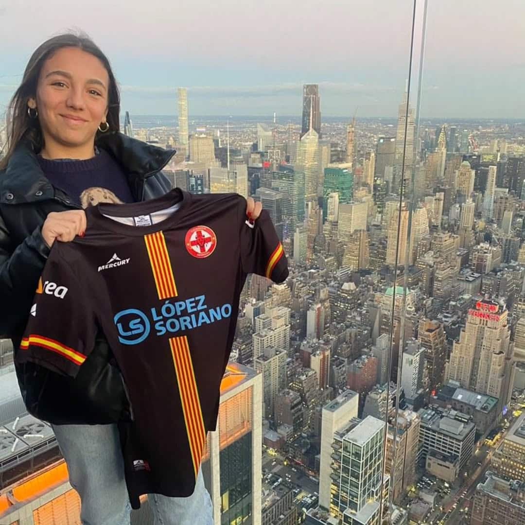 Nuestra jugadora Molina ha llevado el espíritu del Cosmos Aragón hasta lo más alto, literalmente. Durante su viaje a Nueva York, no dudó en posar con nuestra camiseta con el icónico skyline de la Gran Manzana como telón de fondo. Una imagen que simboliza el orgullo de representar nuestros colores allá donde vayamos. ¡Gran gesto, Molina!