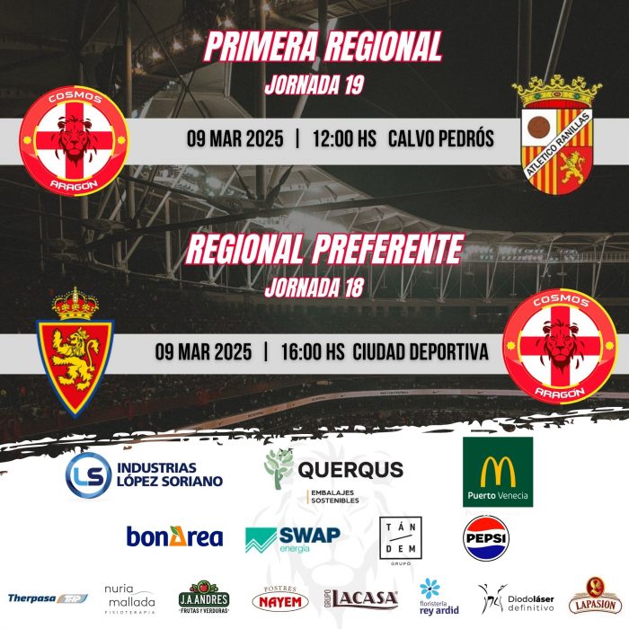 Este fin de semana se presenta como una jornada clave para el Cosmos Aragón, con dos partidos cruciales que prometen mantener a los aficionados al borde de sus asientos. El equipo de *Regional Preferente* se enfrenta al *Real Zaragoza*, un histórico y actual líder de la categoría. Sin embargo, el Cosmos llega con una racha impresionante de resultados que lo mantiene muy motivado, y una victoria en este encuentro podría significar un importante recorte de puntos en la cima de la clasificación. El encuentro se jugará el *9 de marzo a las 16:00 en la Ciudad Deportiva*, un escenario perfecto para ver a las jugadoras del Cosmos darlo todo por un buen resultado.